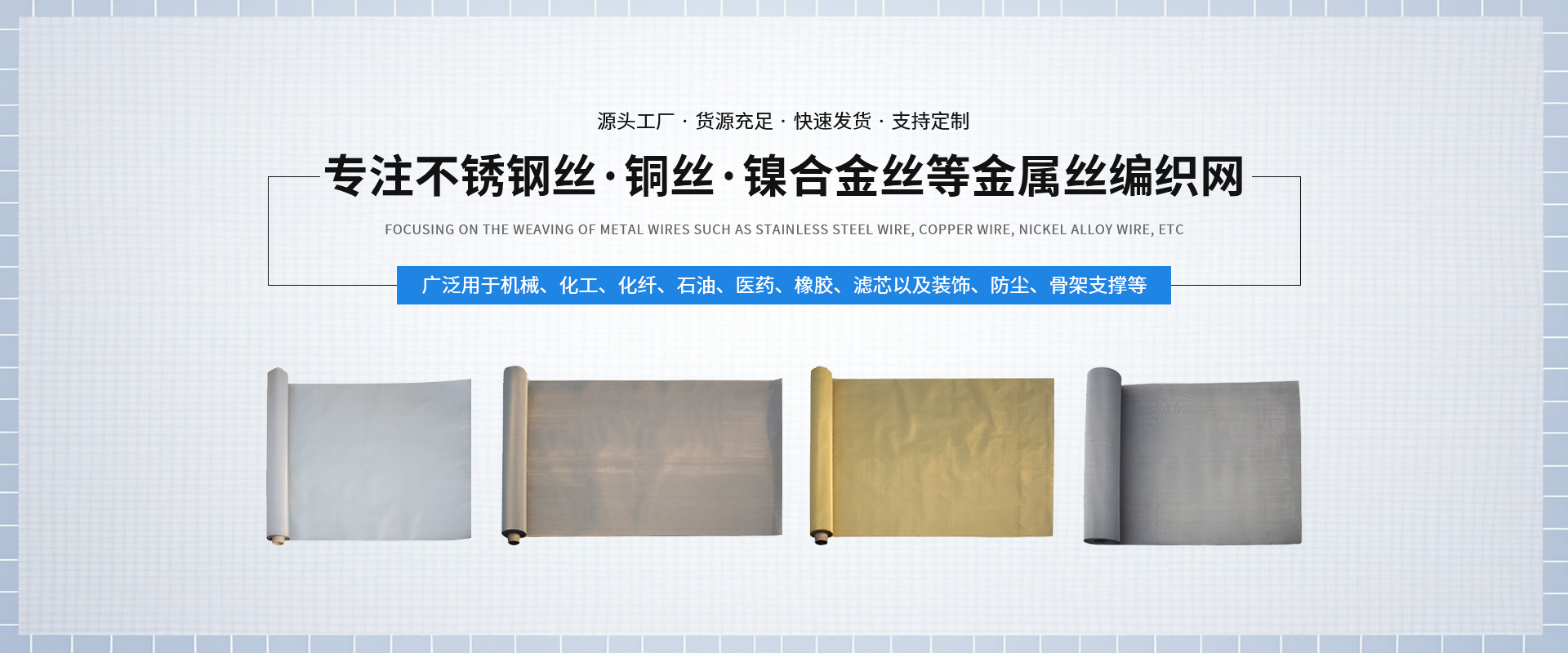 新鄉(xiāng)市中南金屬網(wǎng)有限公司成立于1999 年,公司設(shè)在河南省新鄉(xiāng)市。在過去的十幾年來,我們堅持以嚴(yán)格的管理措施、雄厚的技術(shù)力量、良好的工藝設(shè)施,質(zhì)量上乘、信譽(yù)為上為原則,把樹立良好的企業(yè)形象為工作宗旨,歷經(jīng)市場的嚴(yán)峻考驗并贏得廣大用戶的一致好評。金屬絲網(wǎng)編織結(jié)構(gòu)形式有平紋和斜紋兩種方法,嚴(yán)格按照航空軍品標(biāo)準(zhǔn)HB1862—93和標(biāo)準(zhǔn)GB/T5330—2003標(biāo)準(zhǔn),并等效采用國際標(biāo)準(zhǔn)ISO9044—90標(biāo)準(zhǔn)組織生產(chǎn)。  公司擁有生產(chǎn)設(shè)備和技術(shù)人員,主要生產(chǎn)不銹鋼篩網(wǎng)、磨料網(wǎng)、金屬絲編織方孔網(wǎng)、篩網(wǎng)、濾網(wǎng) 、篩分網(wǎng) 、過濾網(wǎng)、不銹鋼網(wǎng)、絲網(wǎng)、金屬絲網(wǎng)、金屬絲編織密紋網(wǎng)、特種網(wǎng)、不銹鋼密紋網(wǎng)、荷蘭網(wǎng)、席型網(wǎng)。絲網(wǎng)材質(zhì)選用黃銅、錫青銅、不銹鋼、純鎳等。席型網(wǎng)規(guī)格7/44目—500/3500目,方孔網(wǎng)規(guī)格1/2目—500目,網(wǎng)孔25mm—0.028mm,產(chǎn)品廣泛用于機(jī)械、化工、化纖、石油、醫(yī)藥、橡膠、濾芯、固體果粒篩分、流體過濾以及裝飾、防塵、骨架支撐等。  我們以“視質(zhì)量為生命、以信譽(yù)求生存、以科技促發(fā)展、以優(yōu)*產(chǎn)品為客戶服務(wù)”的經(jīng)營理念,真誠的希望與各界人士攜手并進(jìn),共創(chuàng)輝煌!